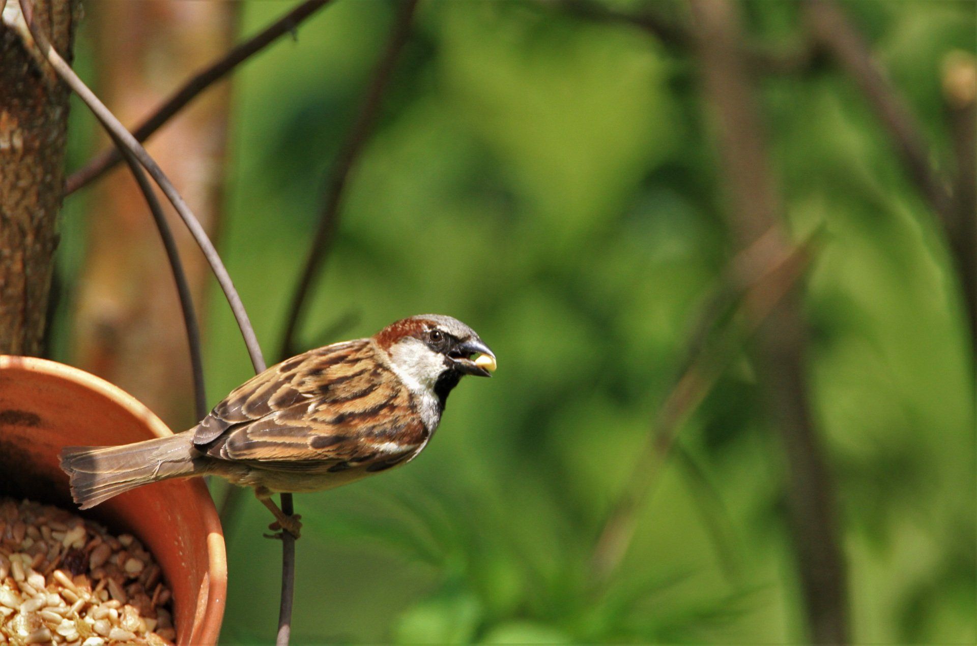 Haussperling oder auch Spatz genannt.. Auch bei den Spatzen gibt es einen großen Unterschied zwischen Männchen und Weibchen. Die Spatzen sind sehr gesellig, mit ihren Art und mit anderen Arten. Gerade die Herren haben keine Scheu, die Nähe von größeren Vögeln zu suchen. Ich habe mich dieses Jahr besonders gefreut, das auch die Spatzen ihre Jungtiere mit zur Futterstelle gebracht haben Weitere Bilder zum Haussperling findest du HIER